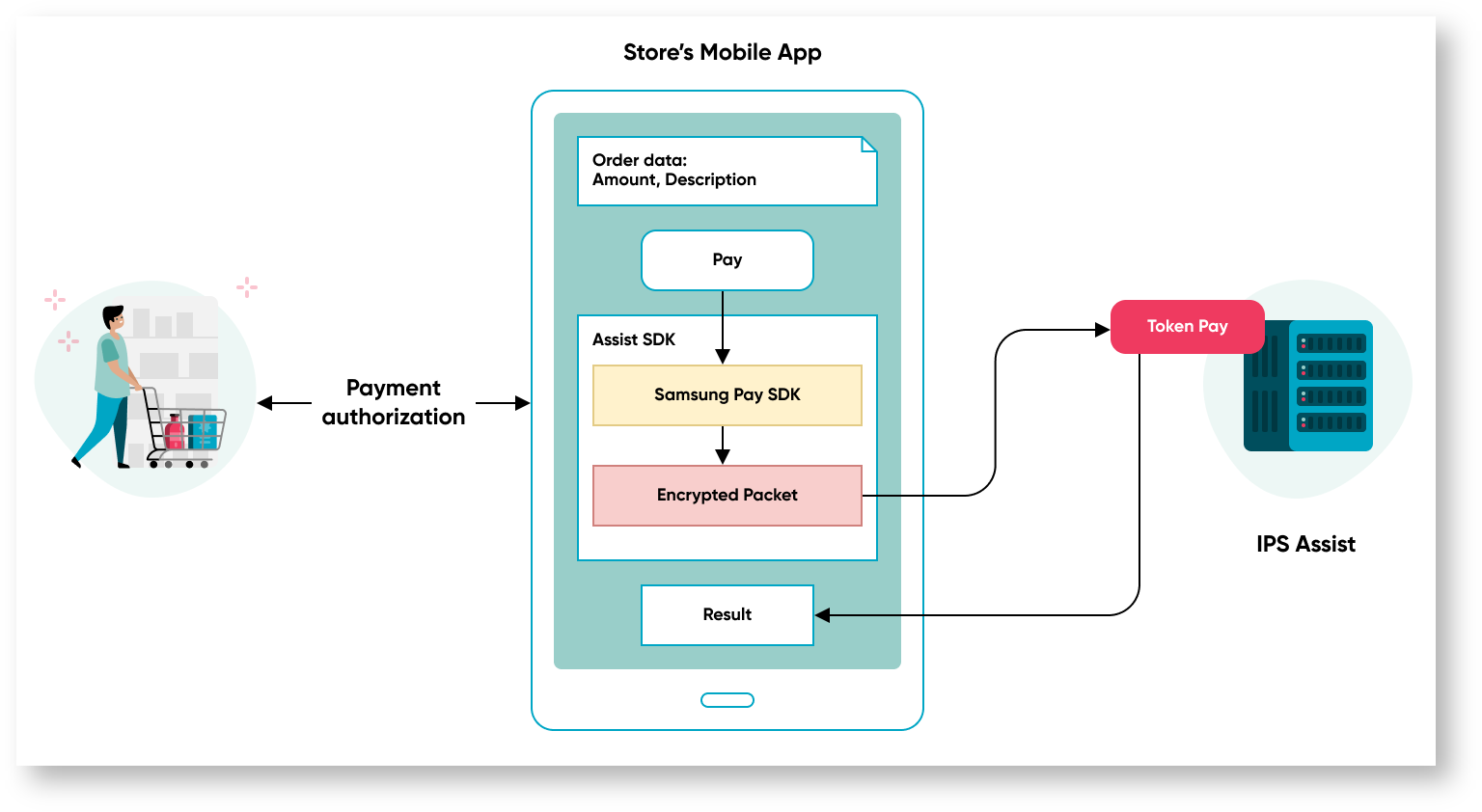 You have to use the Samsung Pay SDK if you don't want to use SDK Assist in the online store mobile app, for creatation of the encrypted package with payment information. The created encrypted packet with payment details then must be transferred to the IPS Assist through the TokenPay service.