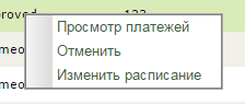 Контекстное меню списка автоплатежей