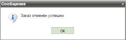 Окно сообщения об успешной отмене автоплатежа