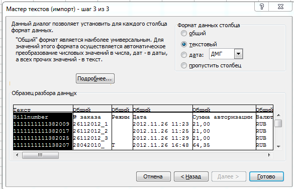 • на шаге 3 определить формат данных первого столбца как текстовый.